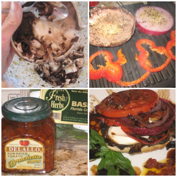 Clean the gills out of the portobello mushroom with a spoon, then wipe with a wet paper towel. Instead of pesto, you can used sun-dried tomato topping!