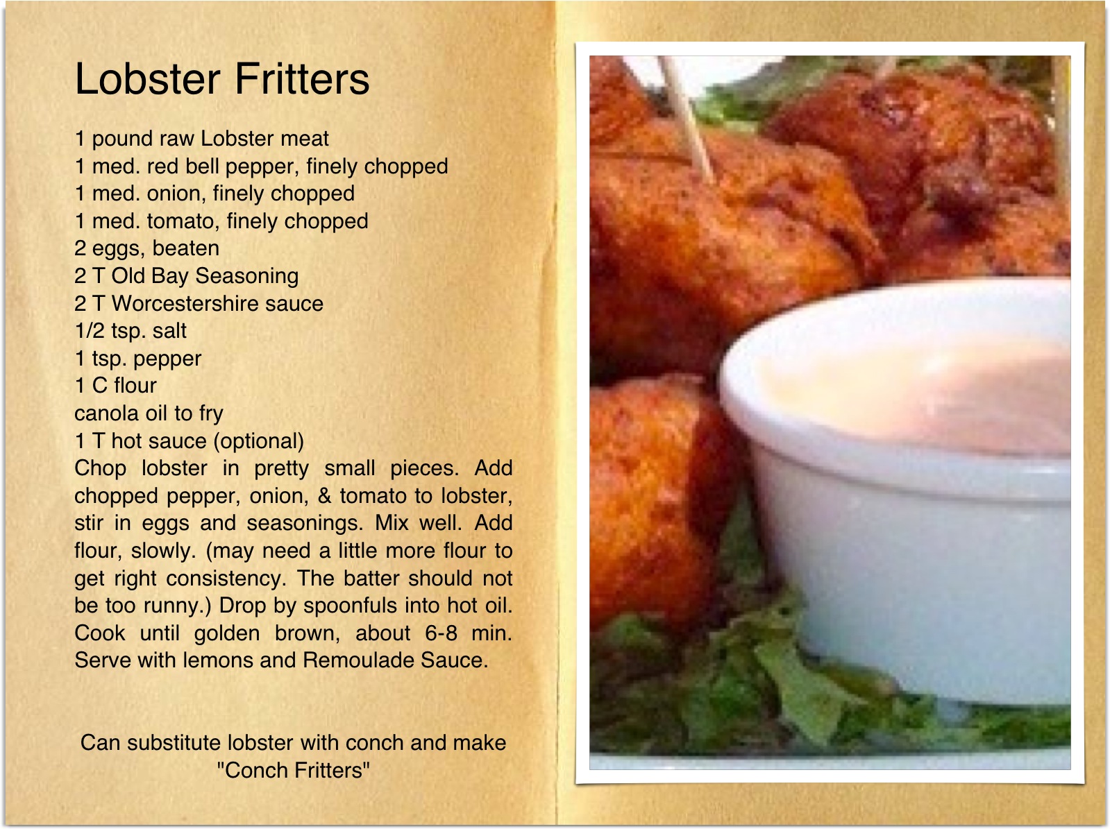 You can substitute conch and make conch fritters with the same recipe!