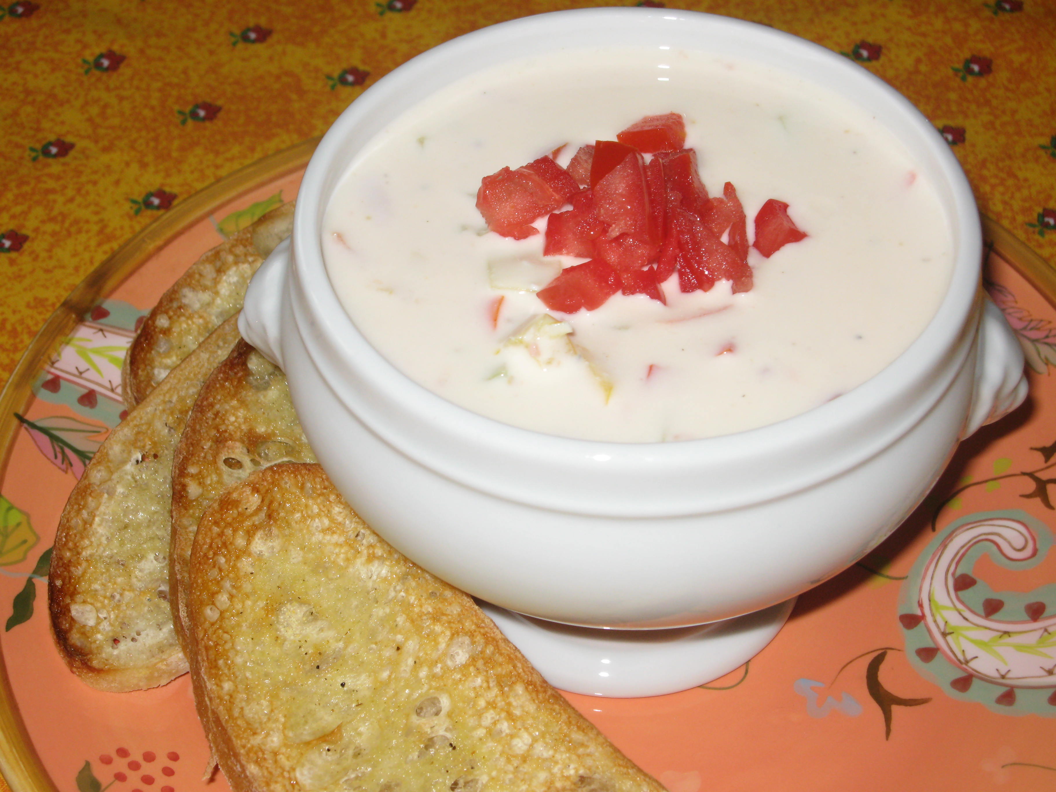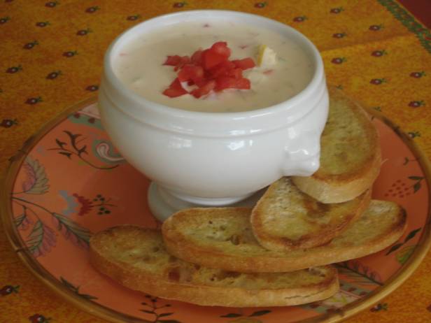 Combine buttermilk, sour cream, and lime juice. Add peppers, cucumber, tomato, salt & pepper. Garnish with some chopped tomatoes & cucumbers. Serve with Pita Croutons on the side. Serves 12
