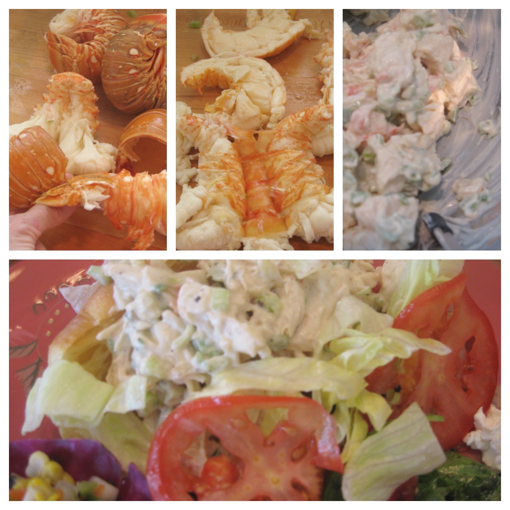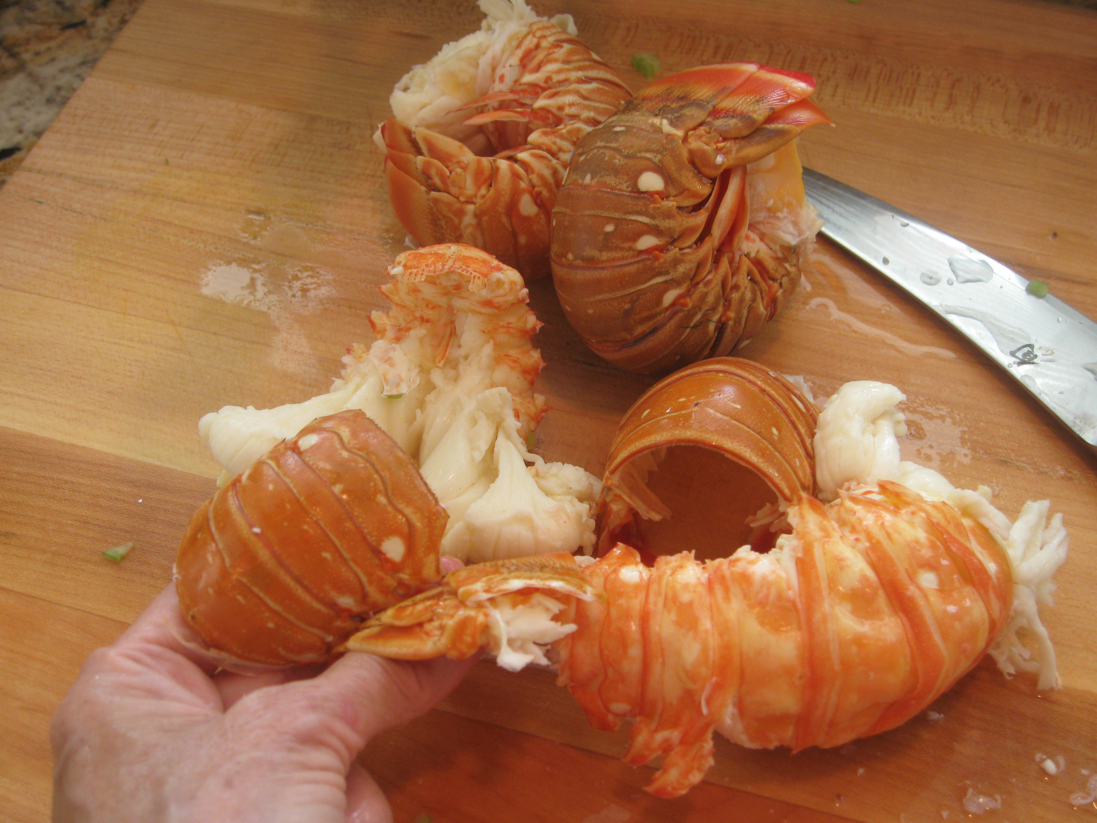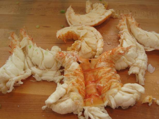 Boil the lobster tails 7 to 8 min. in large pot of water with Old Bay Seasoning & 1 T salt. Chill the lobsters, once chilled, remove the meat from the shell and cut into chunks. Set aside.