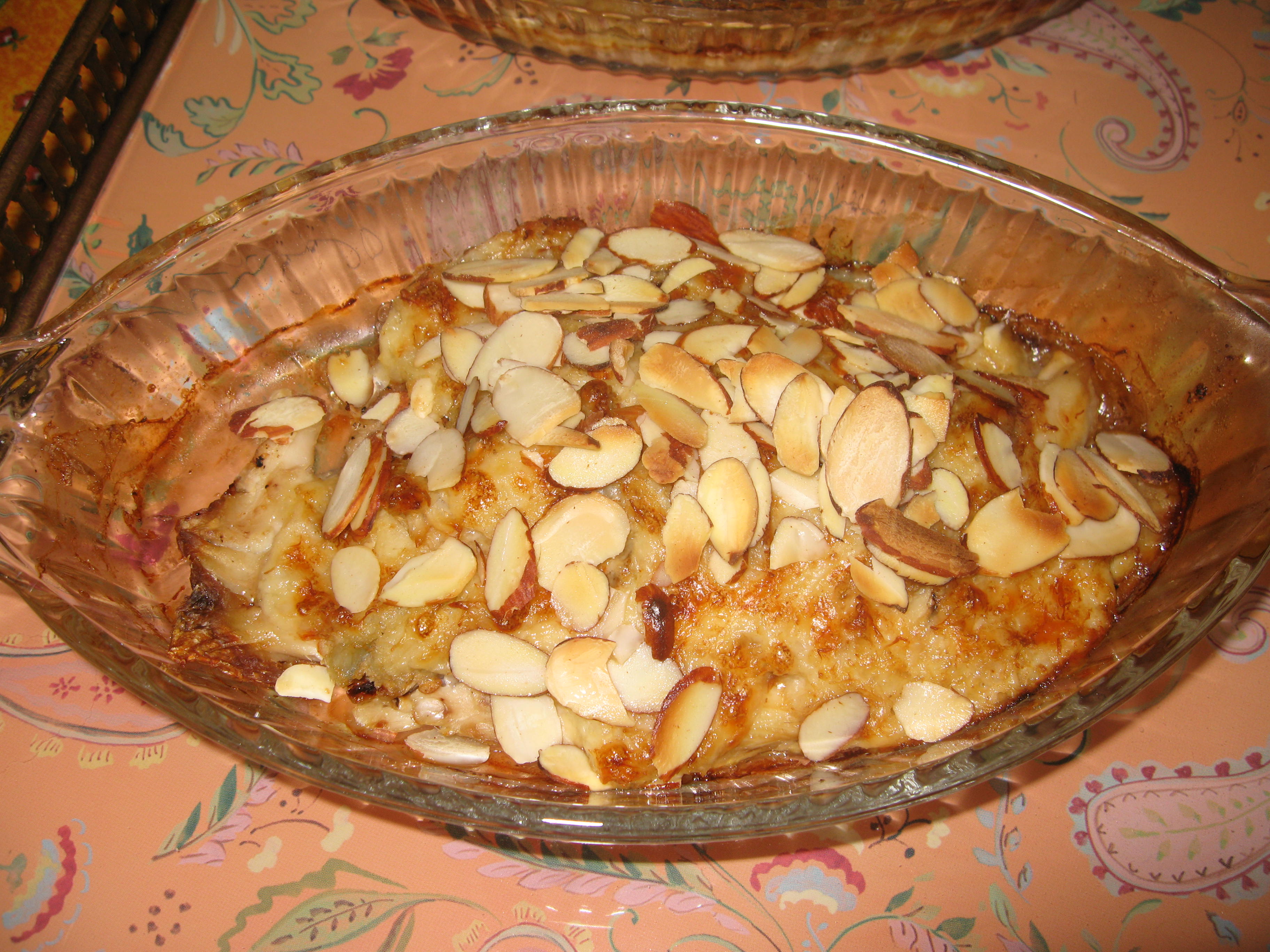 Preheat oven to 375. Place filets on bottom of baking pan. Sprinkle with lemon juice. Bake approx. 25 min, until fish is cooked and flakes, drain. Mix mayo, crab, and cheese. Spread over fish. Place under broiler, keep close eye on fish, after about 5 min., sprinkle with almonds and continue to broil for a few minutes more. Serve hot. Serves 6.