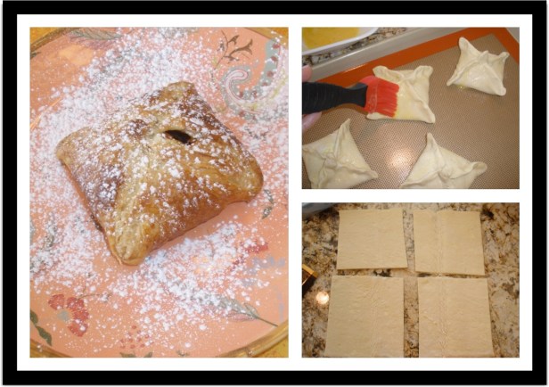 Preheat oven to 425 degrees. Use large cookie sheet, either lined with parchment paper or a silicone mat. Mix the cream cheese with the Pecan Pumpkin Butter until it is thoroughly mixed. Open one sheet of puff pastry, cut it into four equal pieces. Place one teaspoon of the cream cheese mixture in the center of each puff pastry piece. Then sprinkle 1/2 tsp. of chopped pecans over cream cheese. Brush the corners of the pastry with the egg wash. Bring each corner up to the center and twist, then close each seam with a pinch. Seal in the mixture as well as you can.