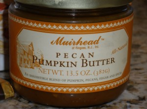 I love this time of year, Williams-Sonoma starts selling this great treat: Pecan Pumpkin Butter! I stock up for the season. It not only taste great on toast, it makes the best pumpkin pies! Here is another use for it…