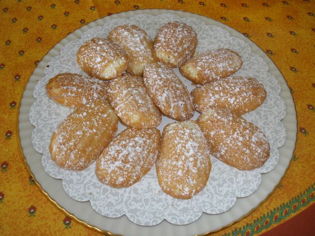 Spoon approximately one tablespoon of the mixture into each cup, filling it 3/4 full. Place on the center rack of the preheated oven and back about 12 minutes or until a cake tester comes out clean and the madeleines are puffed up and golden. Remove to a wire rack to cool and then drop the madeleines out of the pan onto a serving plate. Dust with confectioner’s sugar and serve. Should make 24.