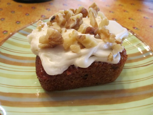 If using cupcakes, or single layer, just frost the tops with the cream cheese frosting and garnish with nuts. Note: Cupcakes will take less time in the oven, approximately 30 minutes.