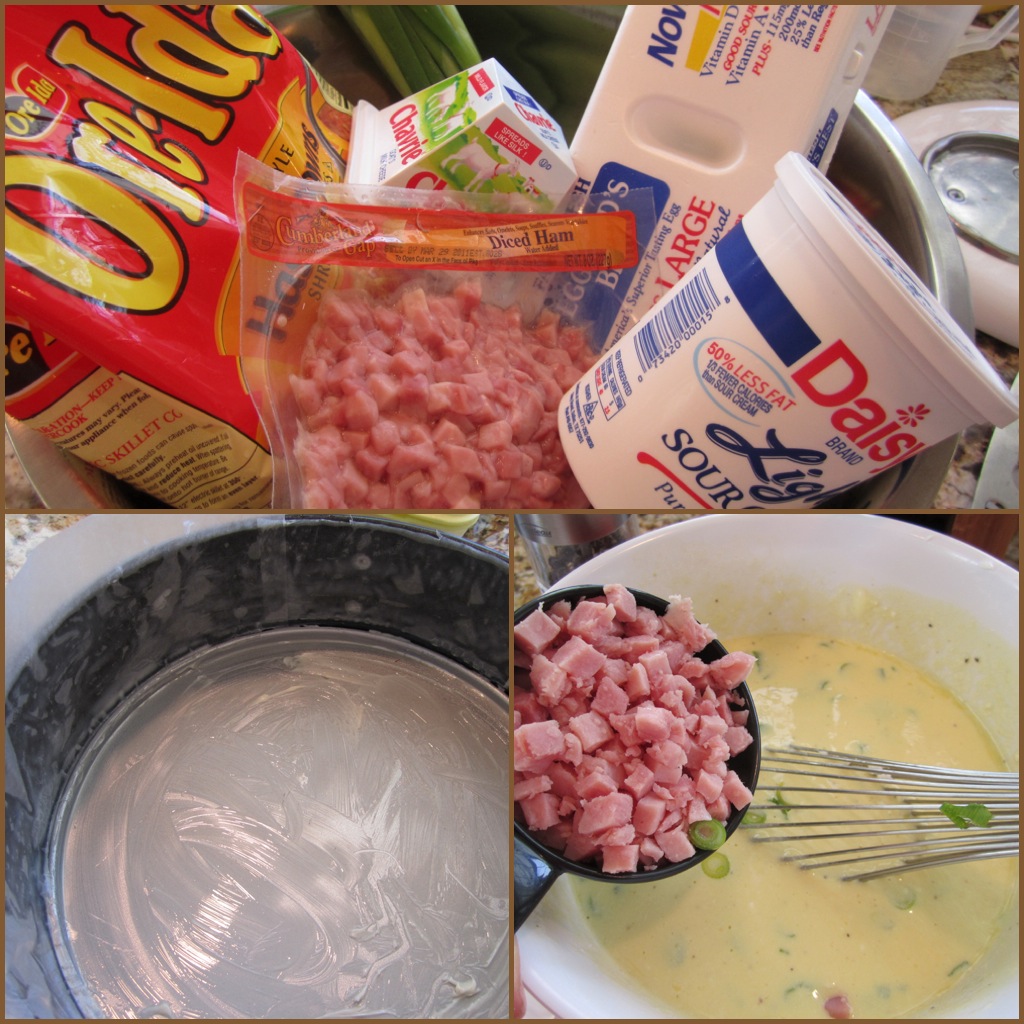 - 1/2 cup diced ham or 1/2 cup diced cooked bacon pieces
