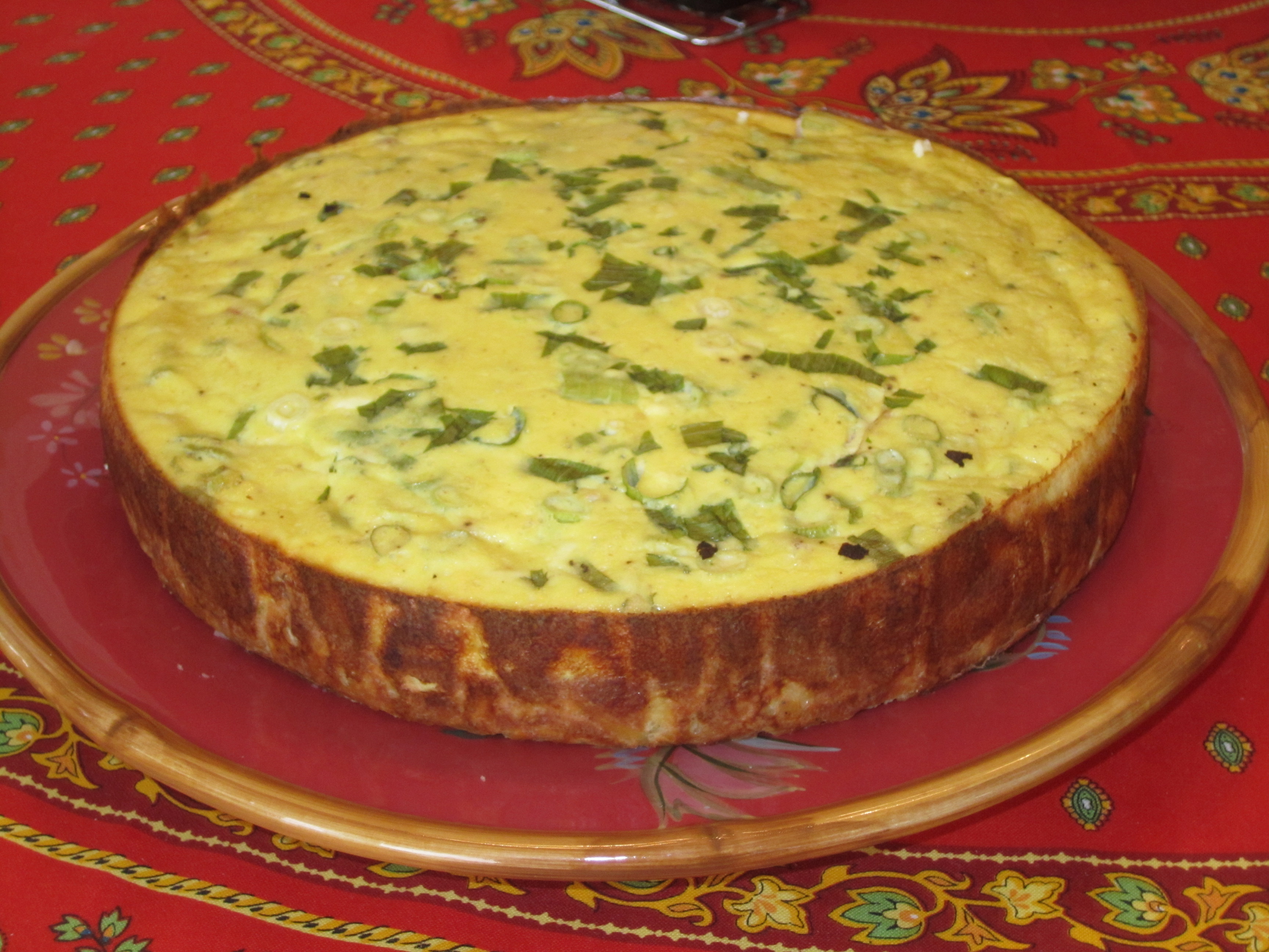 When crust is ready, take out of the oven and pour the egg mixture into it and sprinkle with 1 T remaining scallions. Place back in the oven and bake until set, about 50 minutes. Unmold quiche and peel off waxed paper before serving. Serves 8. (DO NOT FREEZE)