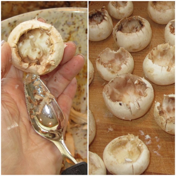 - 40 small white mushrooms, stems removed and cleaned out inside, wiped with wet paper towel