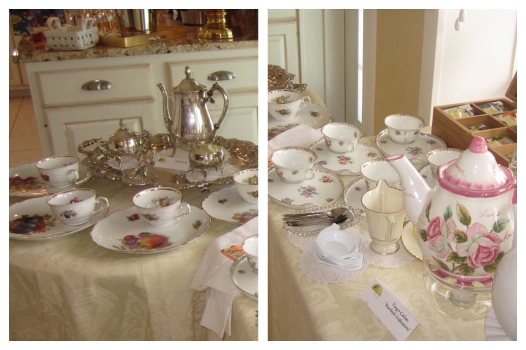 Pull out your beautiful silver service and trays! I serve three types in three different teapots. Make sure you have honey, sugar, various sweeteners, and cream.