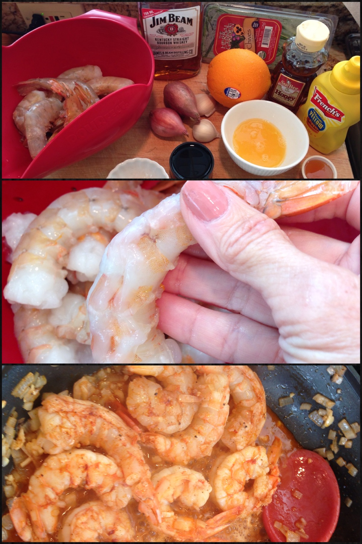 Add 2 to 3 tablespoons of olive oil to large frying pan, heat on med.-high heat. Add shallots and garlic, stir for 1 min. Add a little salt and pepper. Toss in the shrimp and season with a little more salt and pepper. Add paprika and cook for about a minute, mixing it up. Add the bourbon and orange juice. Simmer the dish on med.-low heat for about 5 minutes, liquid should reduce about 1/2. Stir in the honey, mustard and 2 T butter. Stir until incorporated. It’s now ready to serve! Serves 4