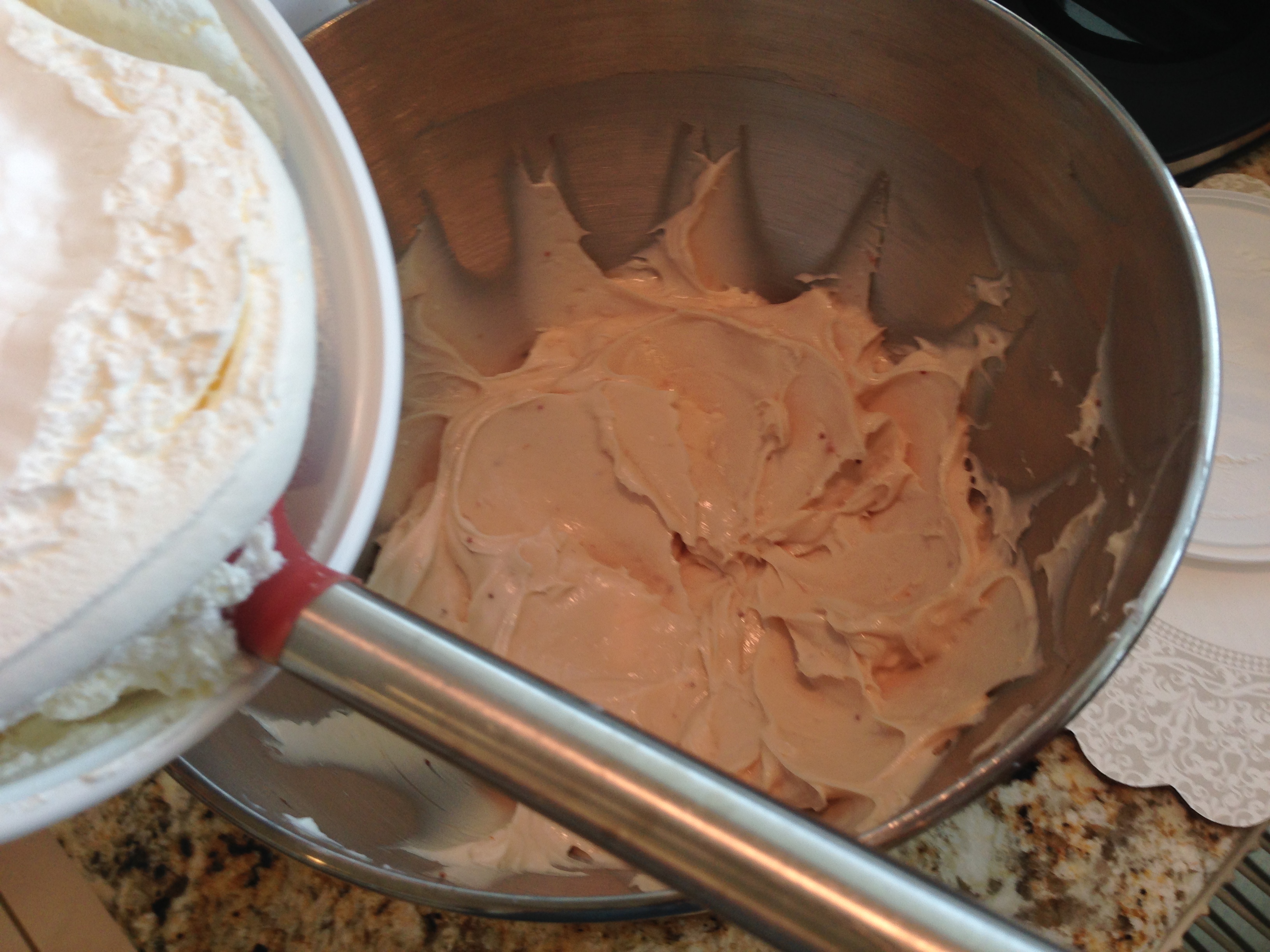 extract in large bowl with electric mixer on medium speed until well blended and smooth (about 1 1/2 minutes). With a large spoon or spatula, gently stir in whipped topping until totally combined. Set aside in the refrigerator. Slice the strawberries into thin slices, lengthwise (leave 7 whole with stems removed for garnish if you desire).