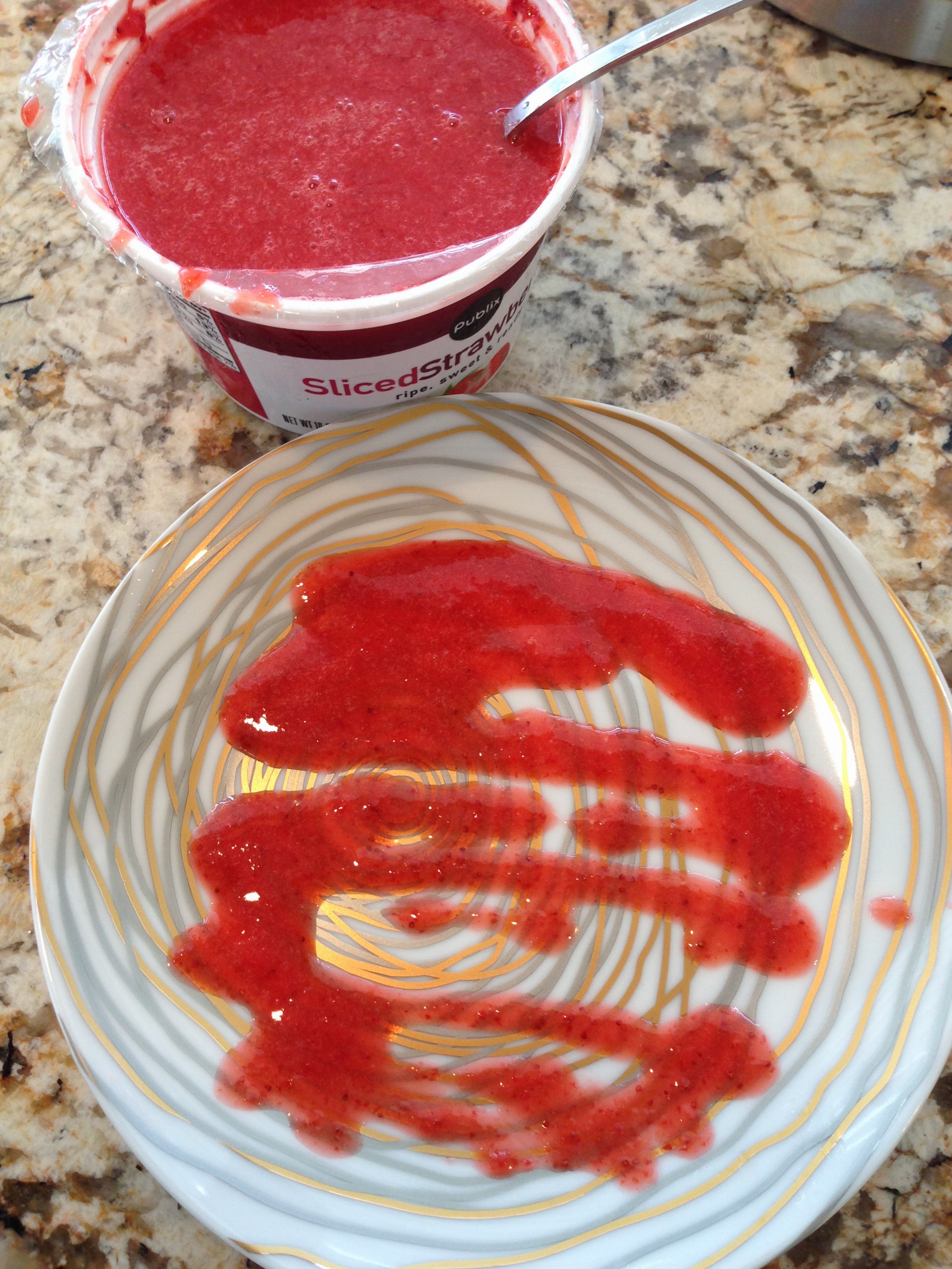 - 1 16 oz. Frozen Sliced Strawberries (Publix brand is great), thawed