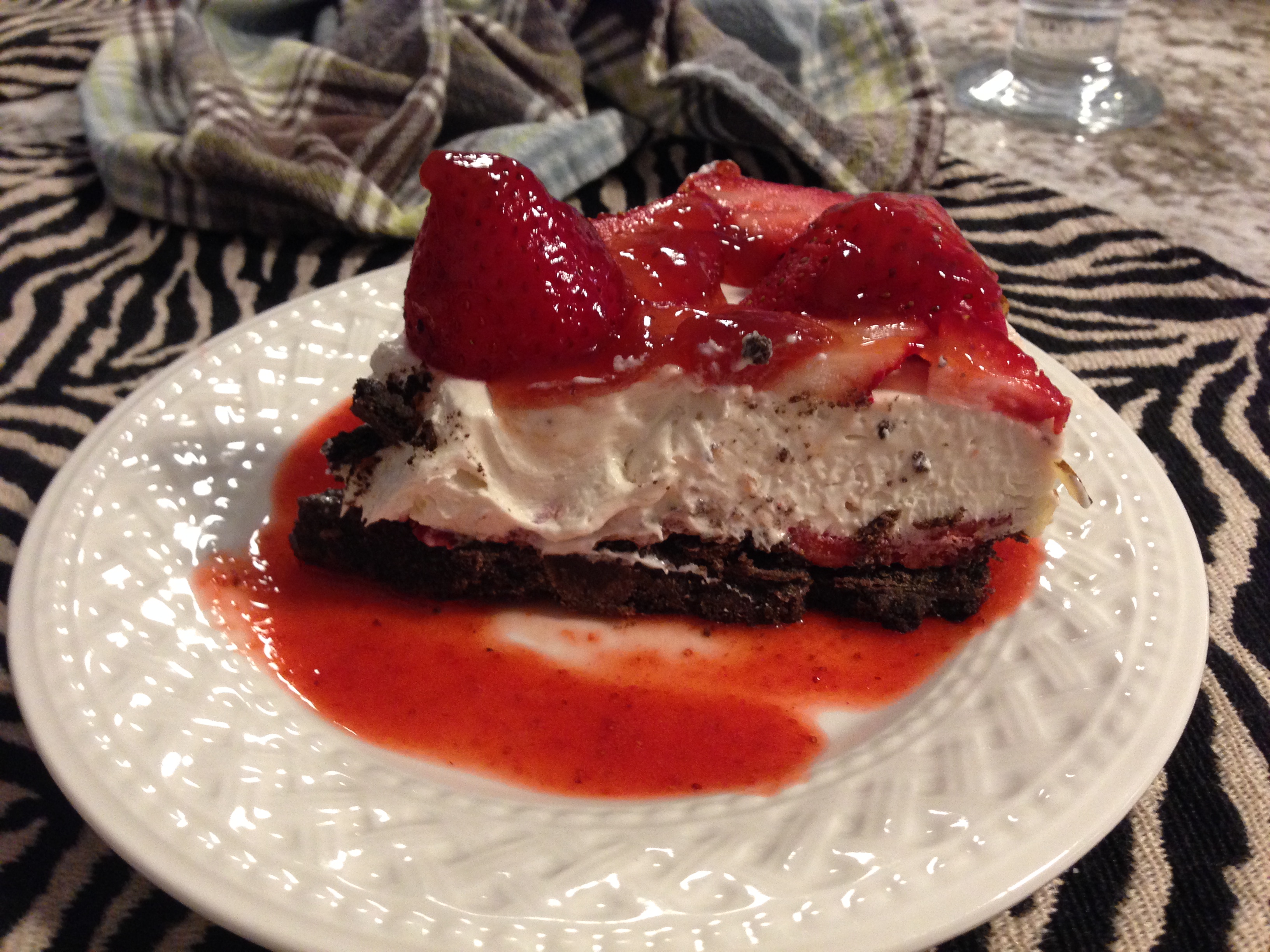 top of 1st cream cheese layer. Now layer the rest of the cream cheese on top of the slices of strawberries and spread around evenly. Refrigerate 3 hours or until set (or place in the freezer for 1 hour).