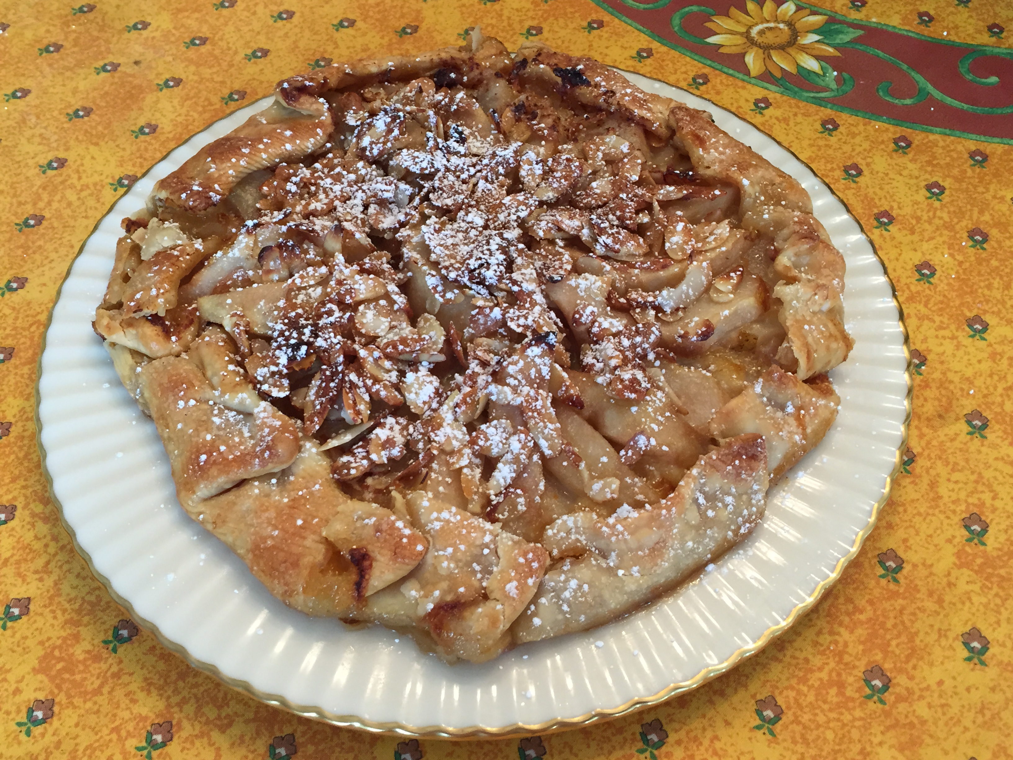 Let it sit for at least 10 minutes before moving it to a serving dish. (There could be some liquid that oozed from the pie, that’s the reason for the rimmed pan!) Take care in moving the galette, use two large spatulas if possible, can easily break.