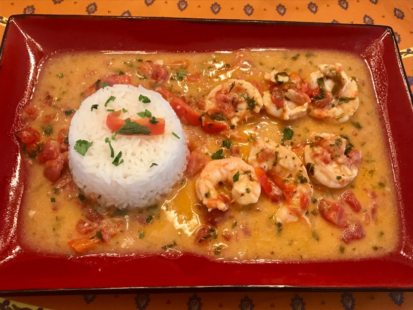 This is a easy, delicious meal that’s good enough for company! I have to give credit to my friend, Frankie, who gave me the recipe. It’s packed full of flavor and goes perfect with Jasmine rice. You can make the sauce ahead, peel and devein your shrimp and refrigerate the shrimp until ready to use. Leave the cooked sauce on the stove and at the last minute add the shrimp and cilantro. It takes less than 2-4 minutes for the shrimp to cook (depending on the size), then serve your dish! Delicious!!