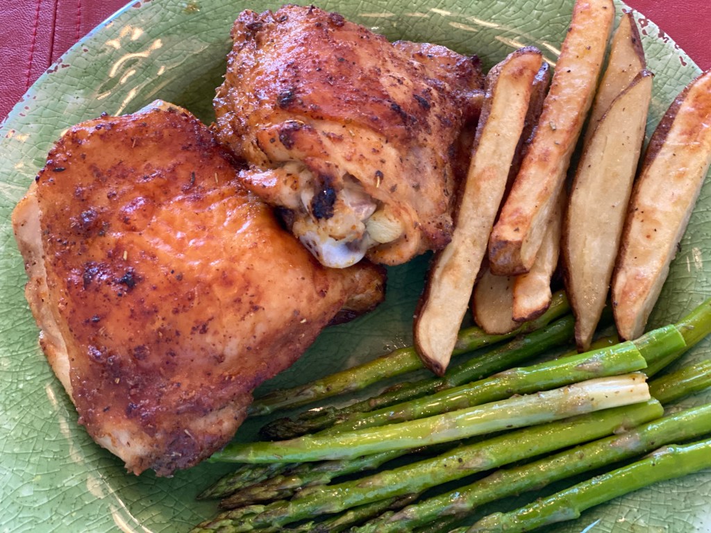 This is a delicious way to prepare chicken! If you want white meat chicken, cook it a little longer, by about 10 minutes. This spice rub works with anything, the smoked paprika blends with the other spices to give a sweetness along with the savory. I make extra spice rub to always have on hand!