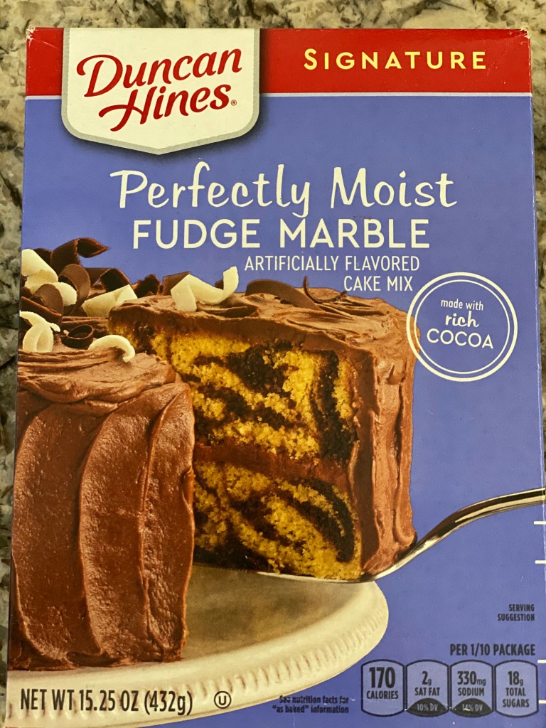 Make the Marble cake according to directions on the box. Pour cake mix into the prepare pan.