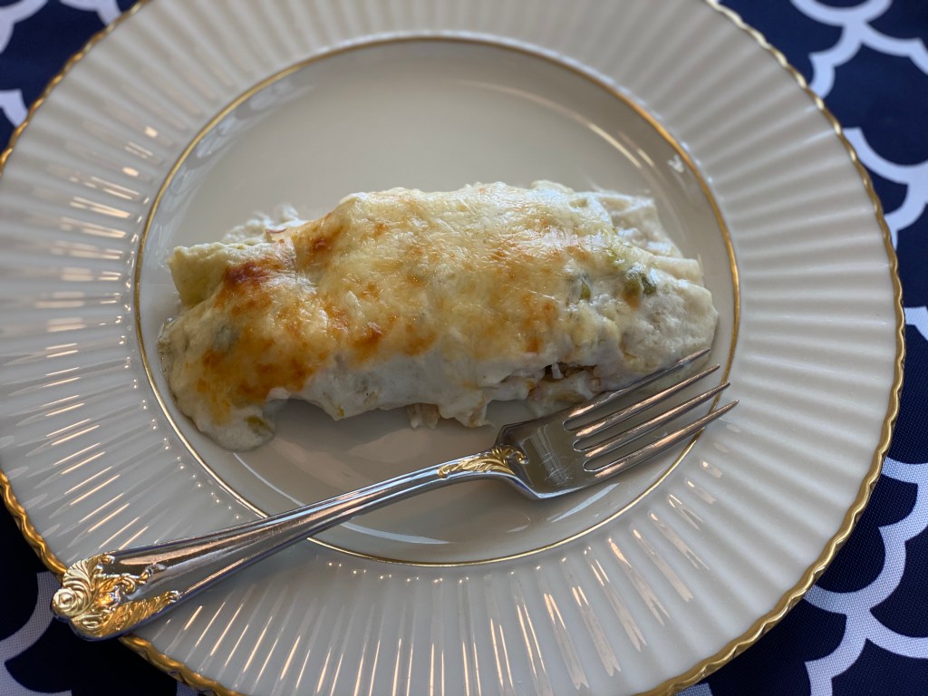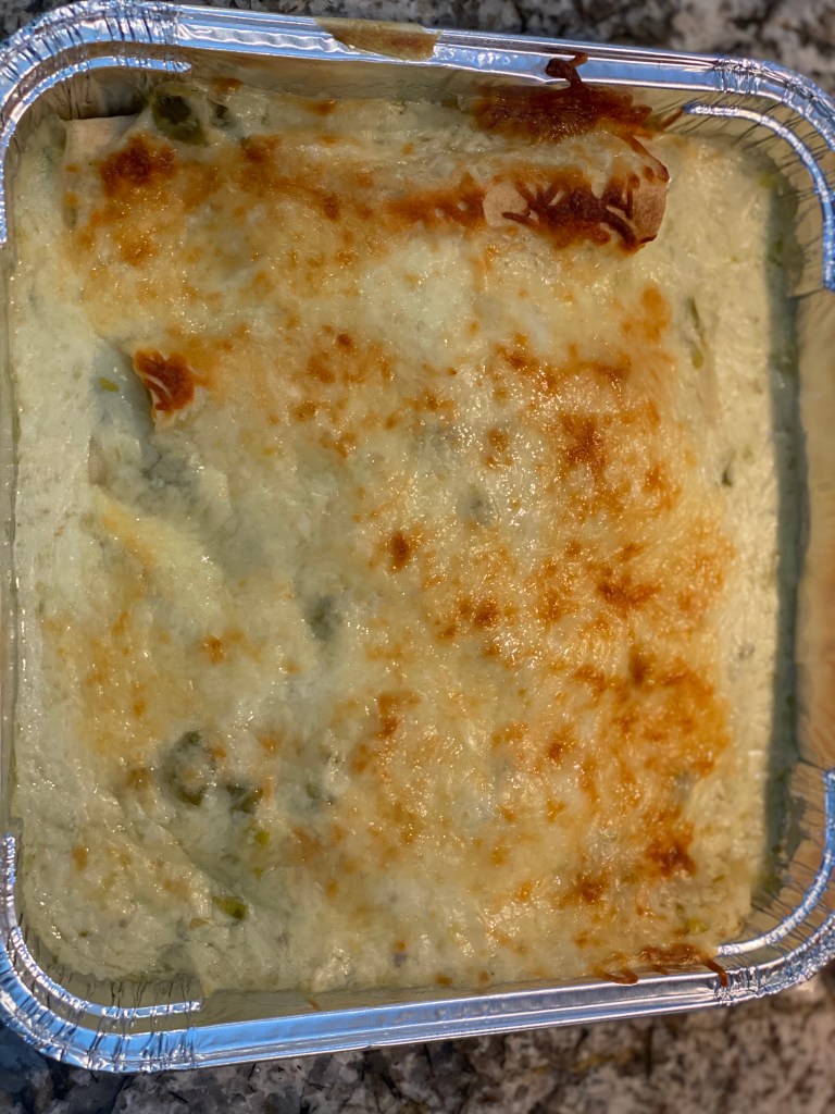 Pour sauce over the enchiladas and top with the remaining cheese. Bake 22 minutes, then turn on the broiler and broil for approx. 2-3 minutes. Keep a good eye on the dish, you just want to lightly brown the top. Serve immediately. Serves 5 (2 each)