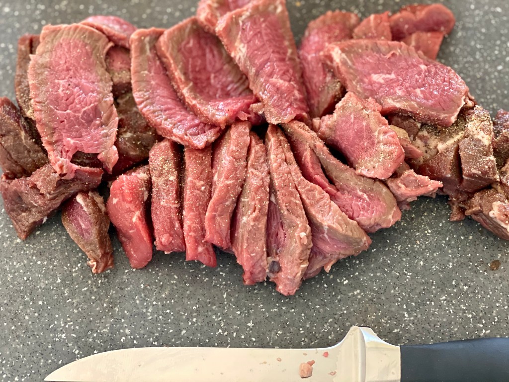 - 1 to 1 1/2 pounds of thinly sliced top sirloin