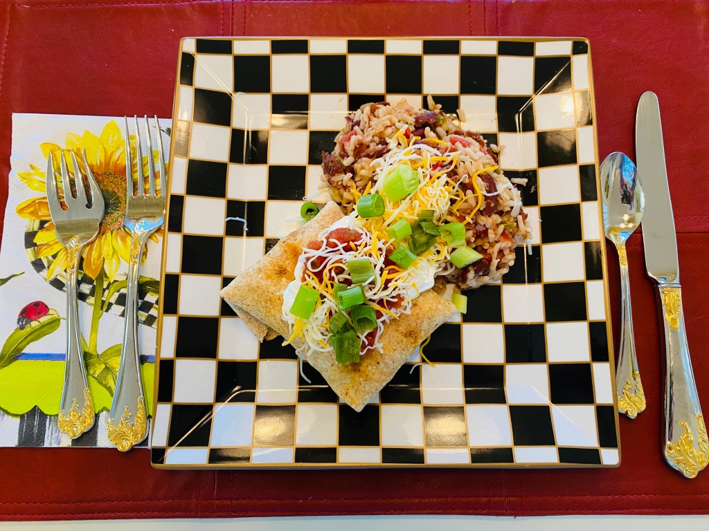 This is another great recipe that you can use left over rotisserie chicken. You can also use the smaller flour tortillas and make appetizers. With the added toppings, it’s a delicious dish!