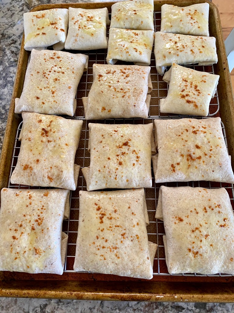 NOTE: I had leftover chicken mixture, and some smaller flour tortillas, so I filled those and baked along side the larger ones, these are perfect for appetizers!