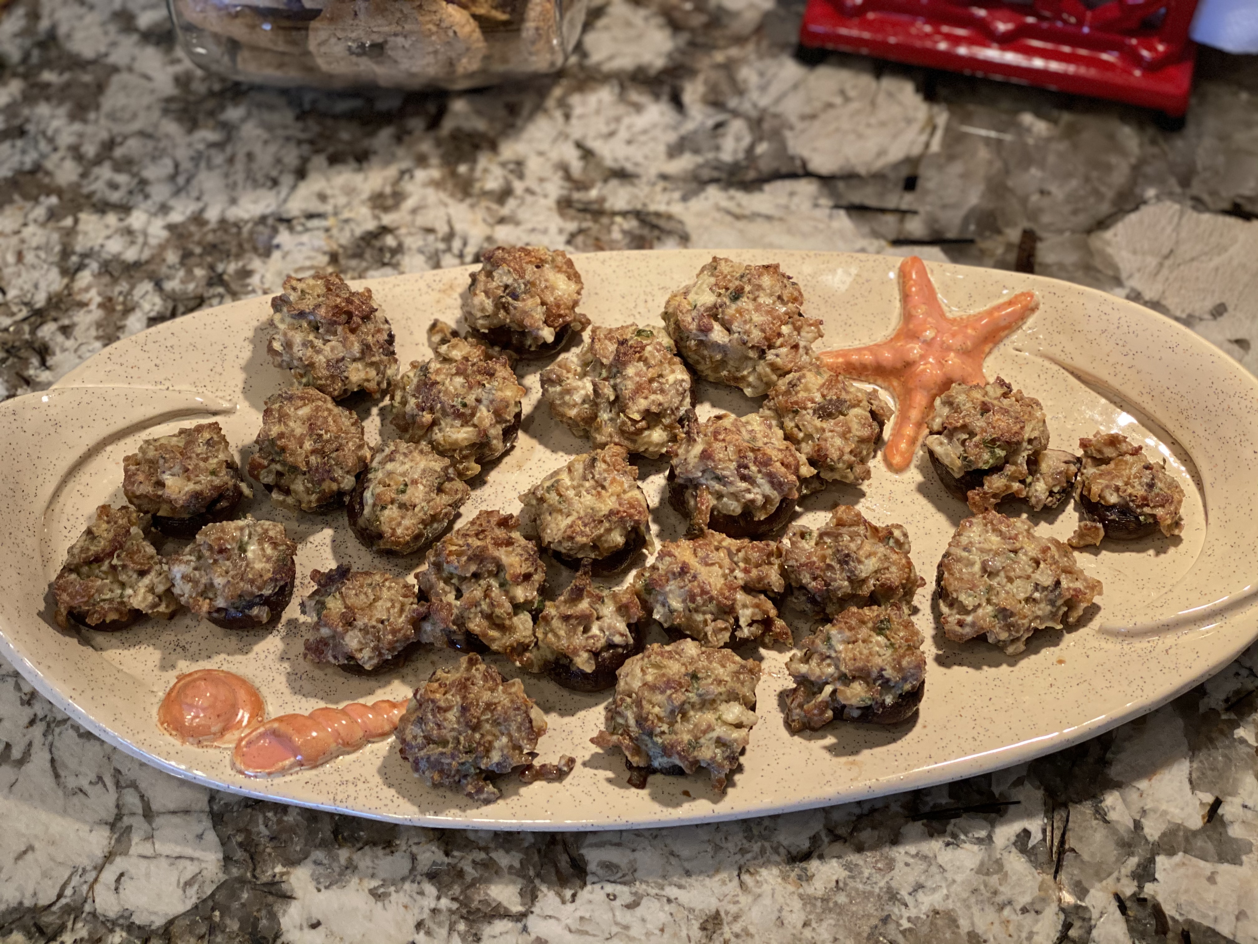 Wow you’re cooking today. The mushrooms like to try them with Jim’s homemade Italian sausage.