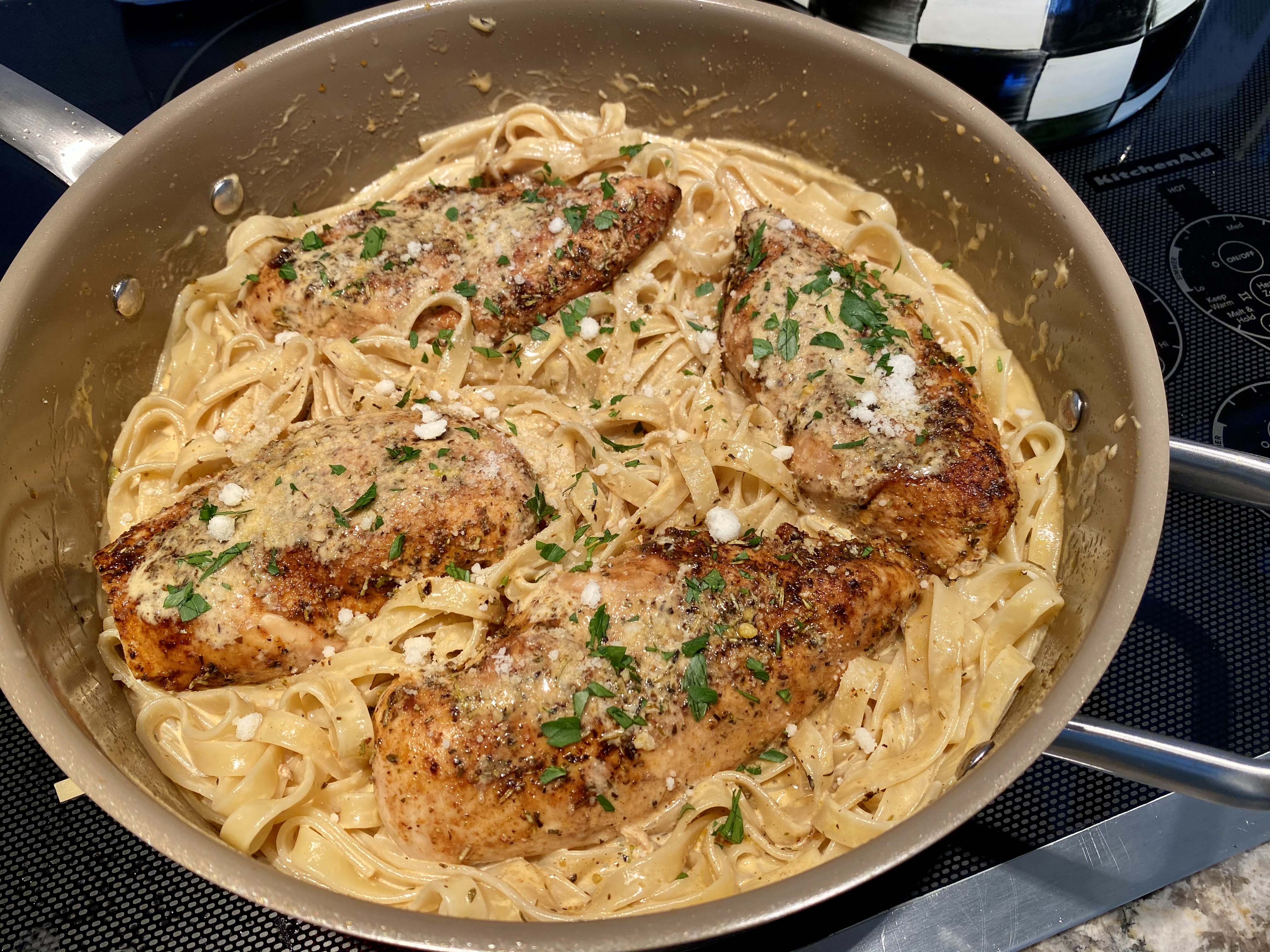 Using cream to make this easy restaurant quality meal at home is definitely worth the effort! Flavorful and tender chicken over creamy fettuccine, what more could you want!