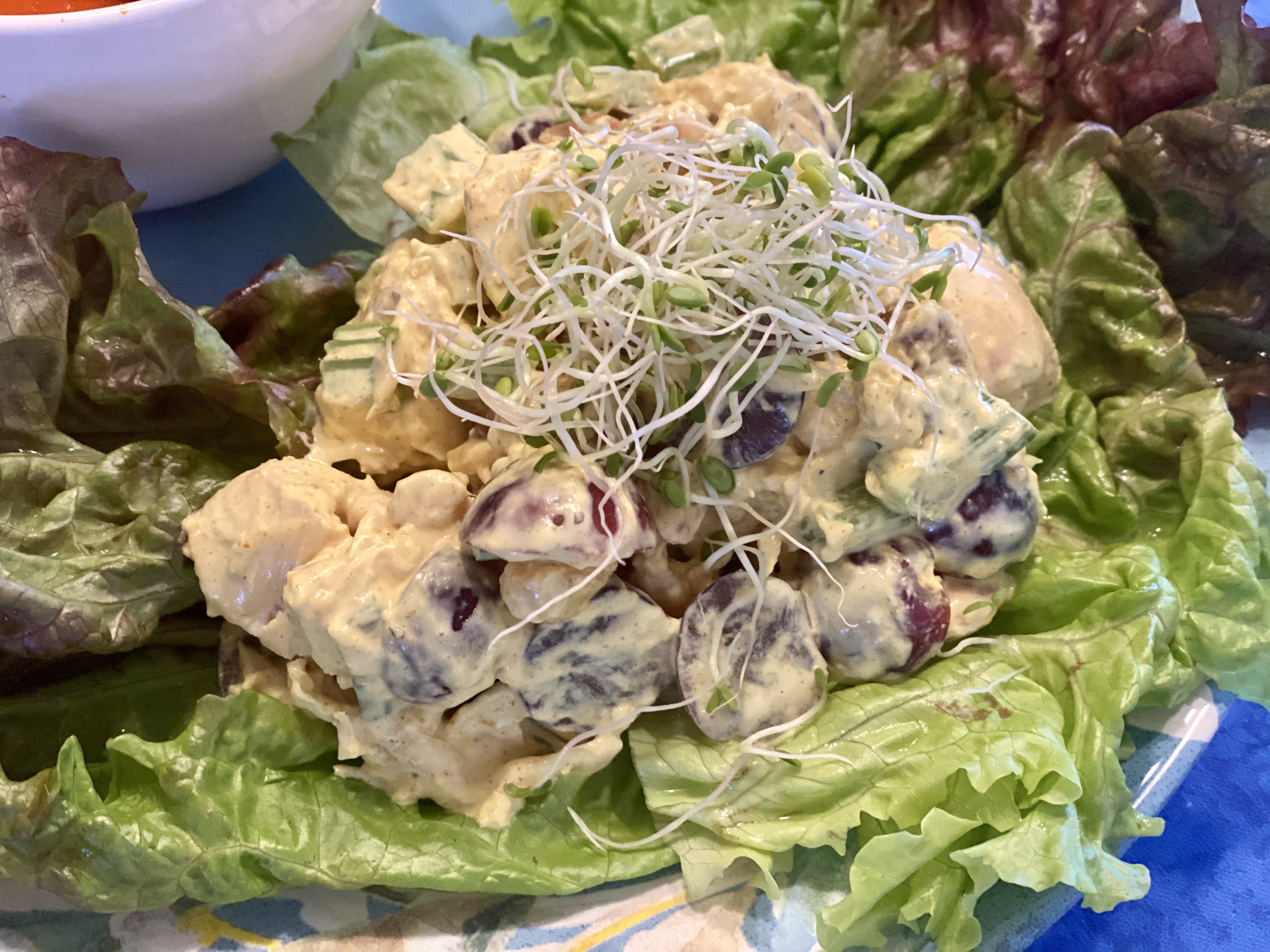 What’s spring without a great chicken salad, this one has succulent oven roasted chicken, juicy grapes and crunchy cashews drenched with a creamy curry dressing!