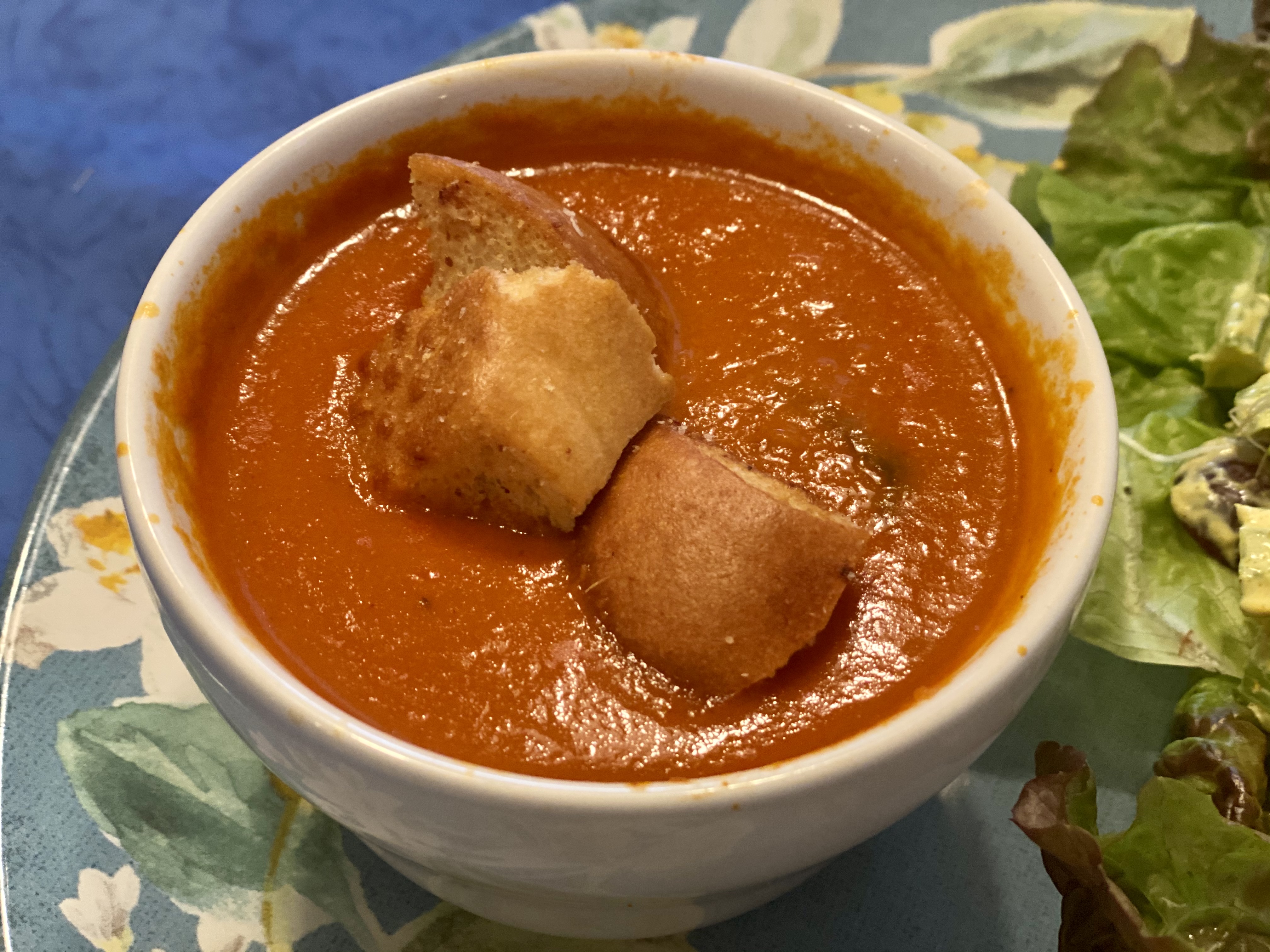 Elevate your soup with a topping of fresh croutons and feta crumble and optional, a splash of olive oil with truffles!