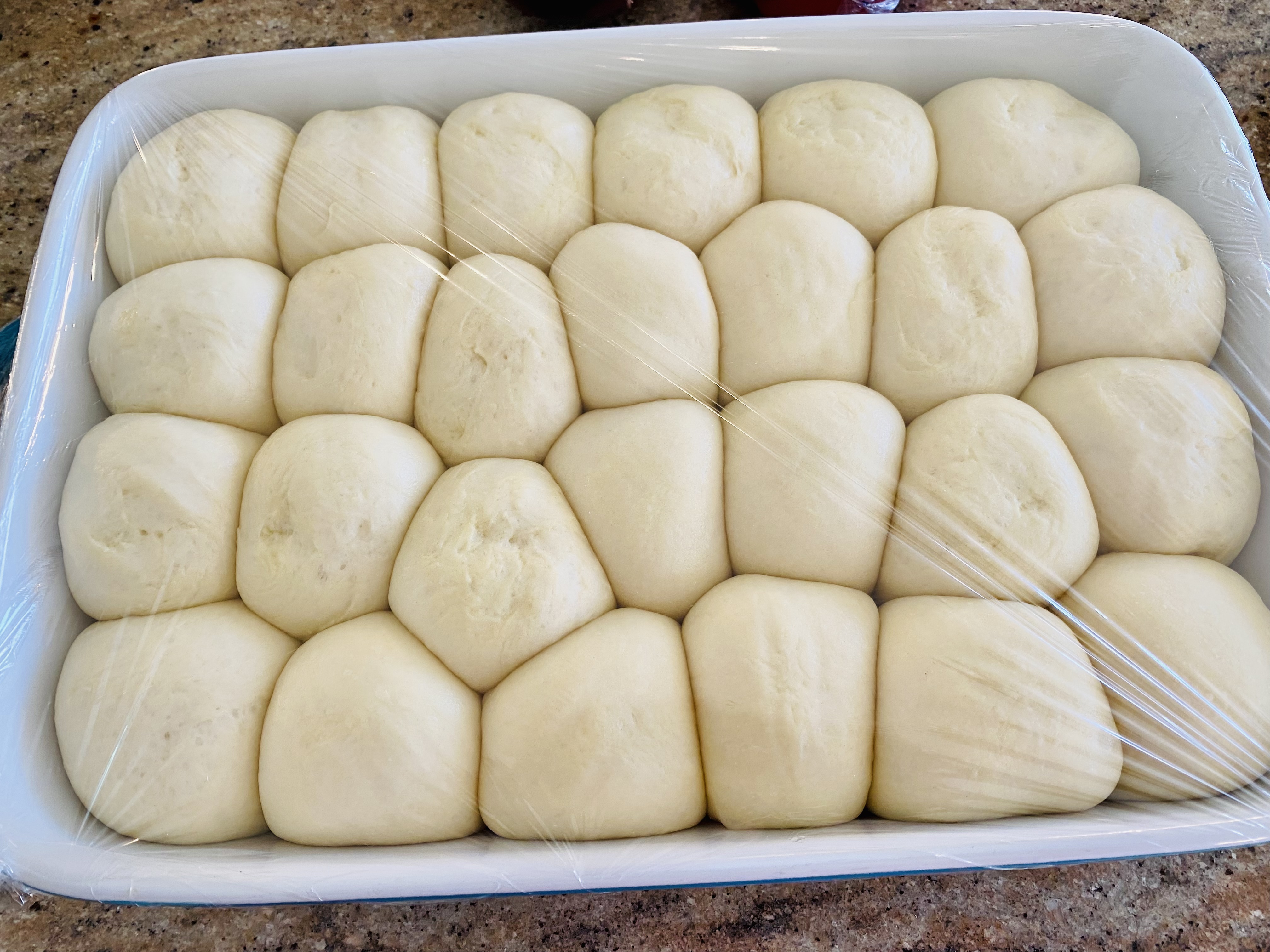 - 26 (or less) frozen Rhodes dinner rolls (you can find these a Walmart Groceries or various other stores)