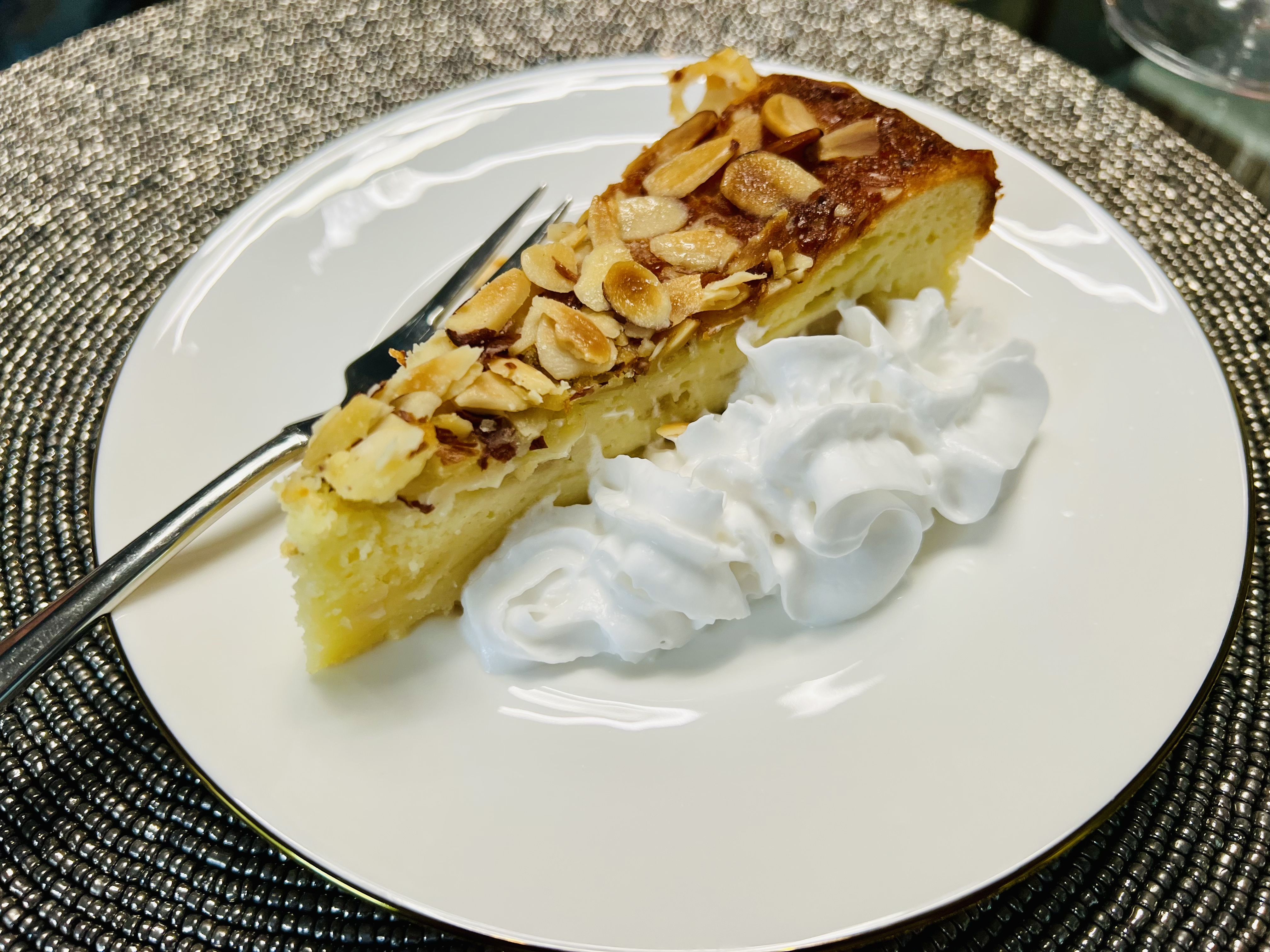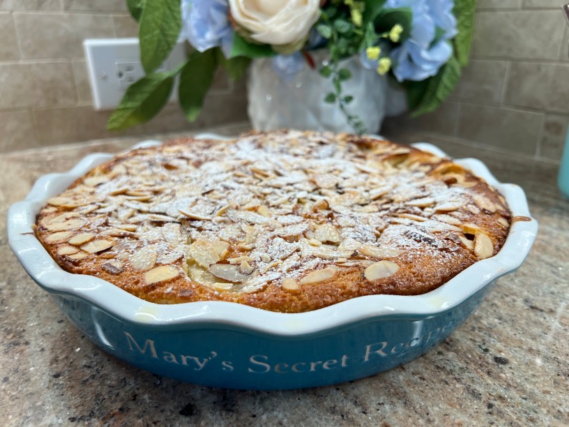 Bake in preheated oven for 45-50 minutes or until golden brown. Allow to cool for one hour then sprinkle with powder sugar. Serves 8 (Optional: serve with a dollop of whipped cream)