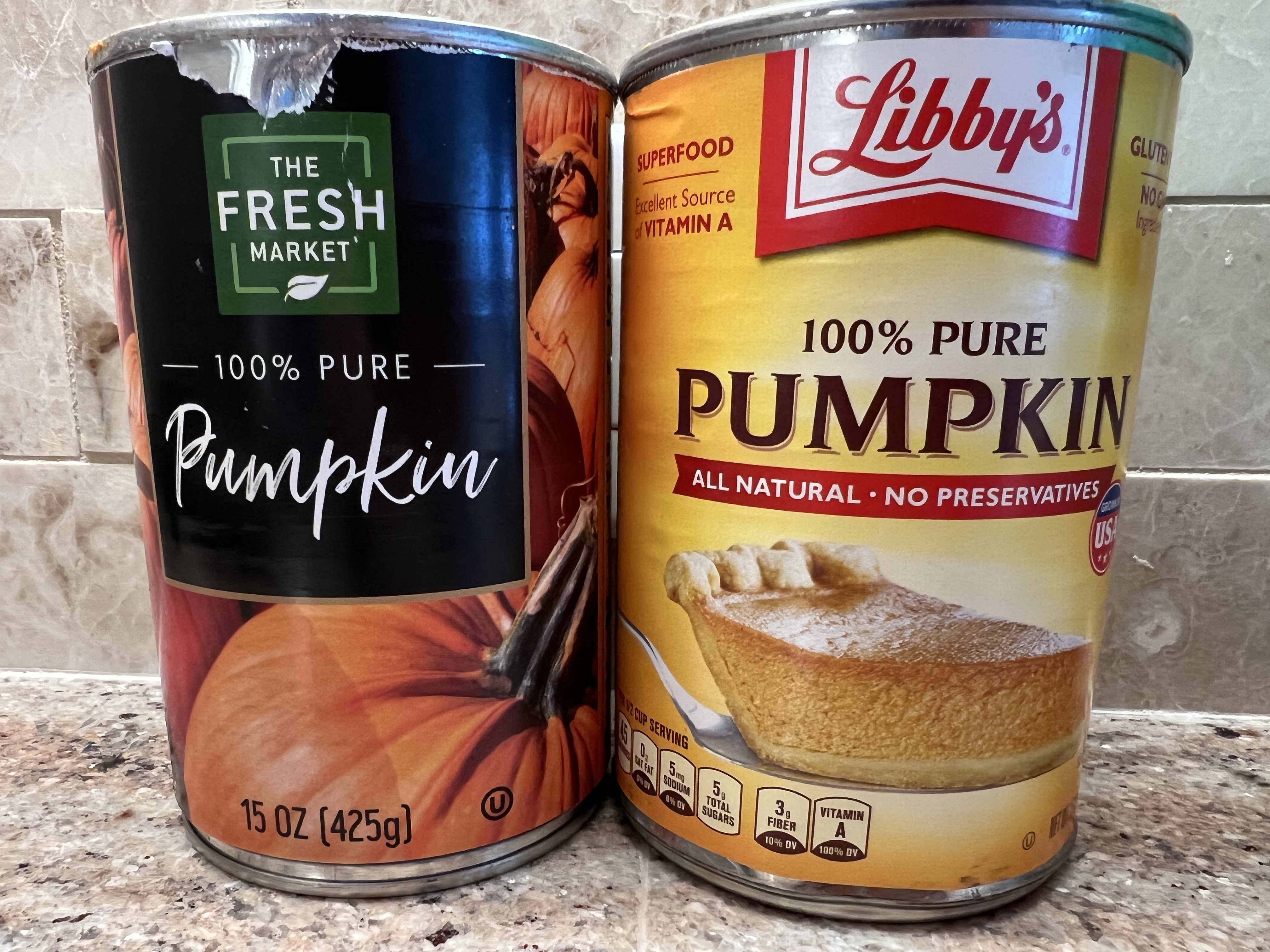 NOTE: I did a taste test between Libby’s 100% pure pumpkin and The Fresh Market 100% Pure Pumpkin! The winner is (by far) THE FRESH MARKET 100% Pure Pumpkin!