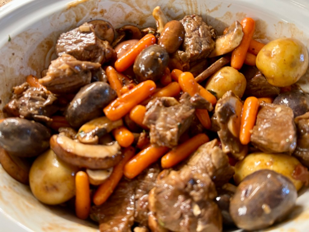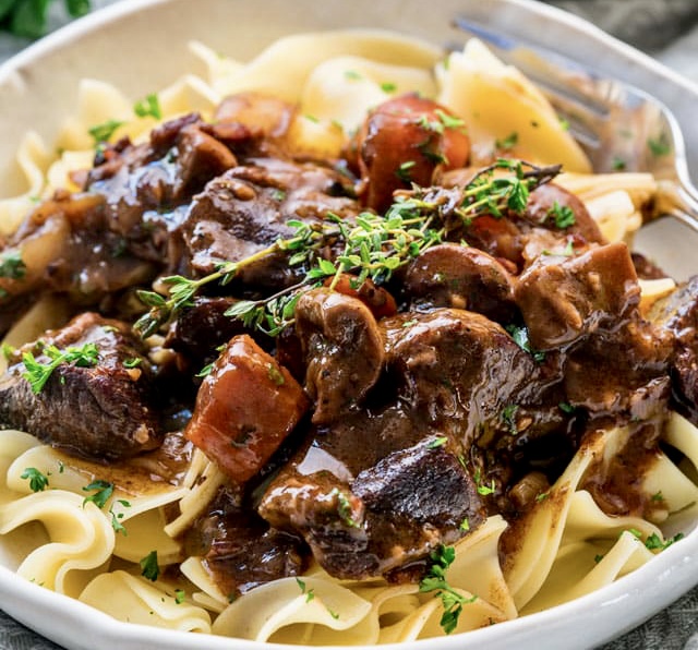 This hearty meal is so delicious with a complex flavor good enough for company, but feels like a comfort food. It’s fairly easy and comes together in your slow cooker. Serve it with rice, noodles, or mash potatoes, make sure you sop up all that delicious gravy!