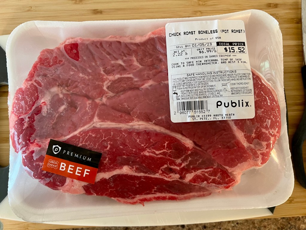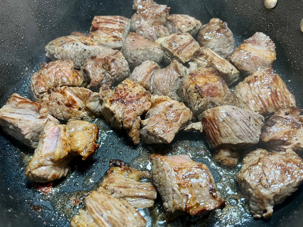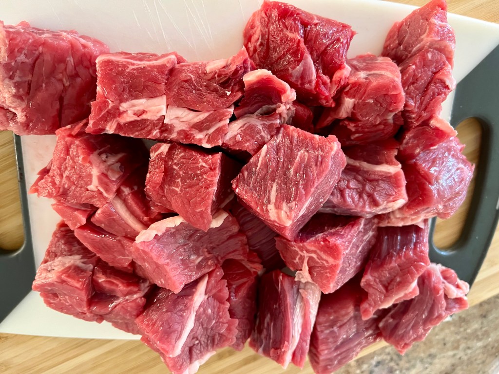- 2 1/2 to 3 pounds boneless chuck roast (cut into 1 inch cubes)