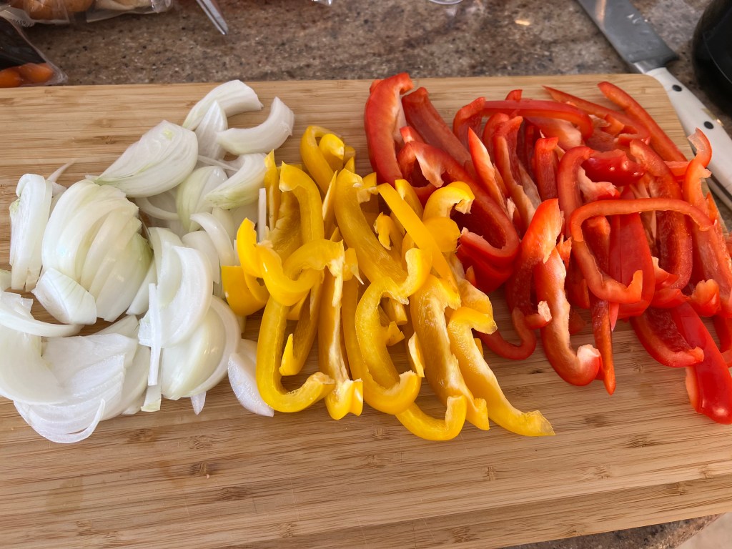 Keeping the same pan over medium heat, add the peppers, onion, and prosciutto and cook until the peppers & onions have browned and the prosciutto is crisp, about 5-7 minutes. Add the garlic and cook for 1 minute. Add the Rotel, wine, and herbs. Using a wooden spoon, scrape the brown bits off the bottom of the pan. Add the olives and capers and stir. Add the chicken stock and bring the mixture to a boil. Reduce the heat and simmer, covered, until the chicken is cooked through, about 30 minutes.