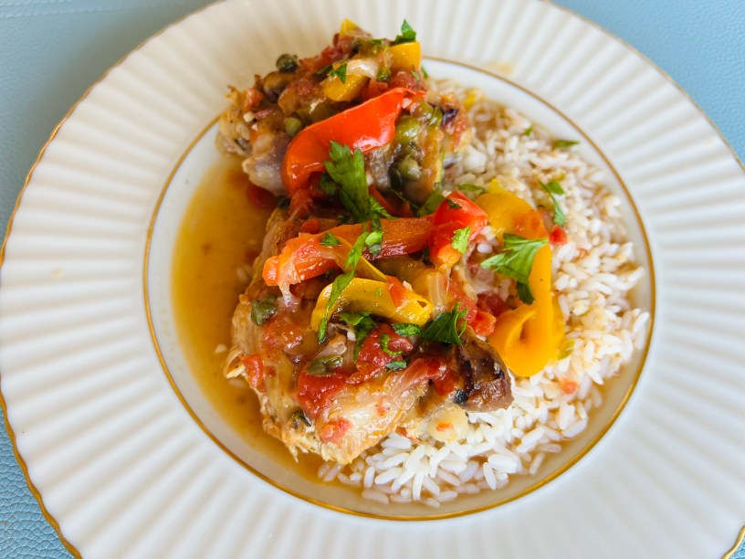 Tasty and full of flavor, this chicken dinner is served over rice. It has so many savory notes and will become a regular way to serve chicken! With the addition of prosciutto and wine it goes over the top!