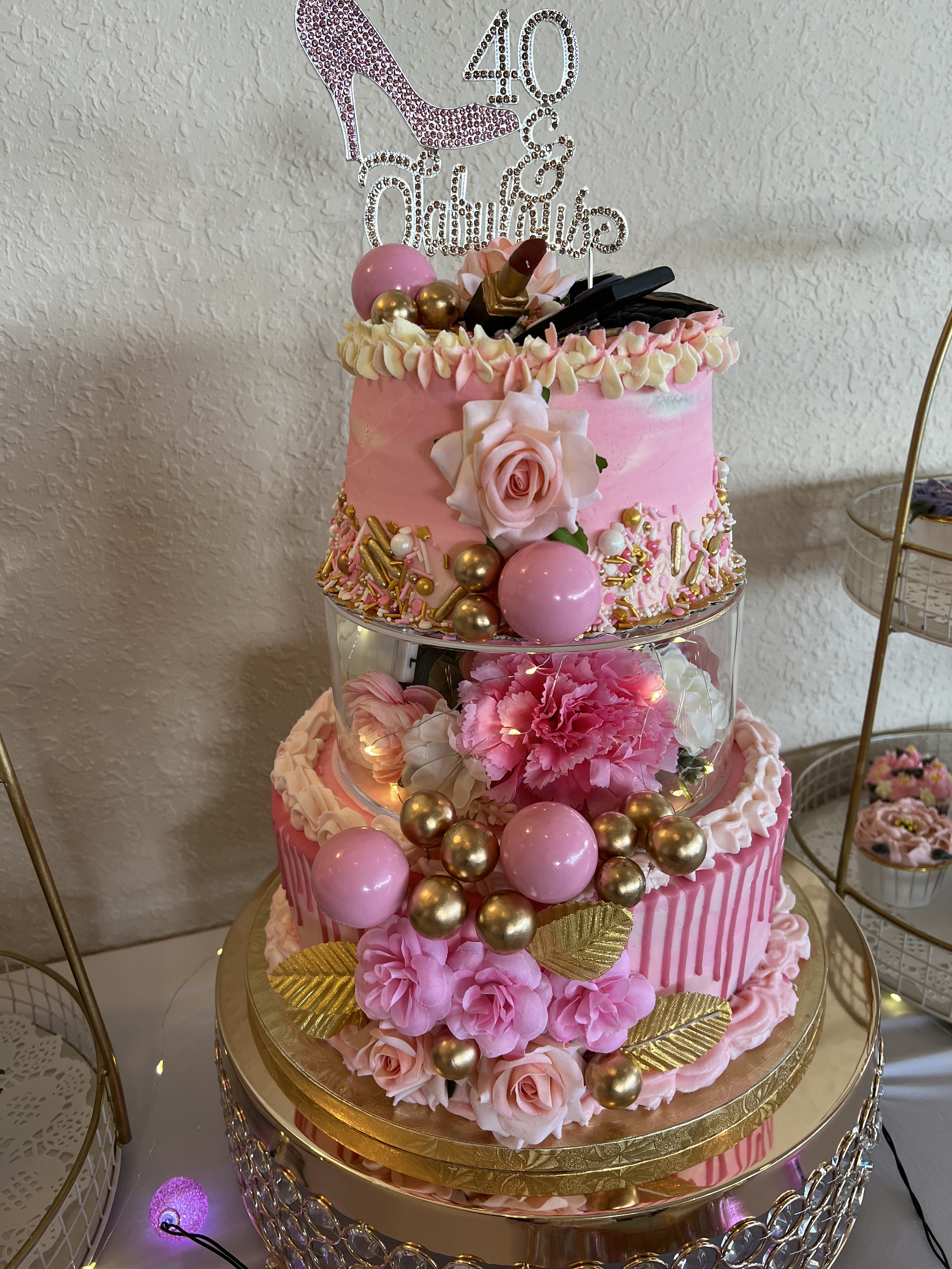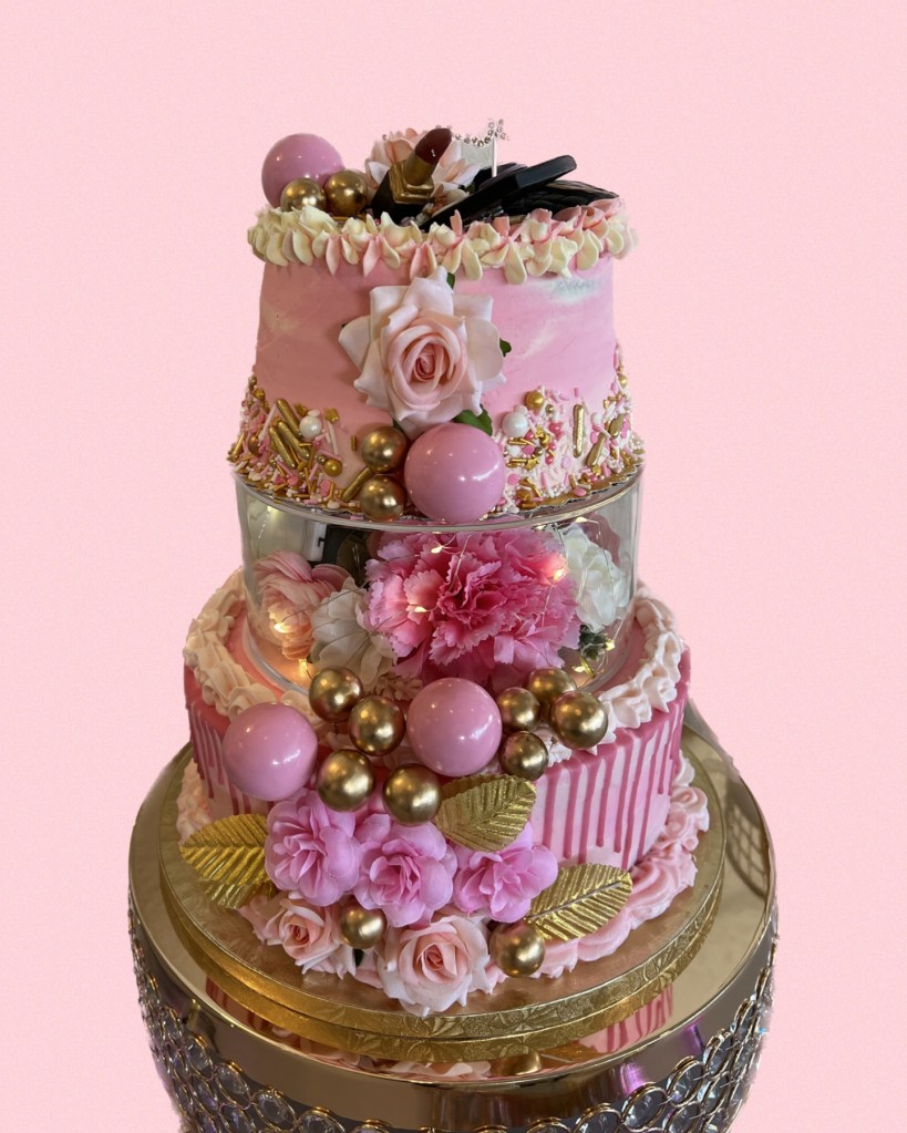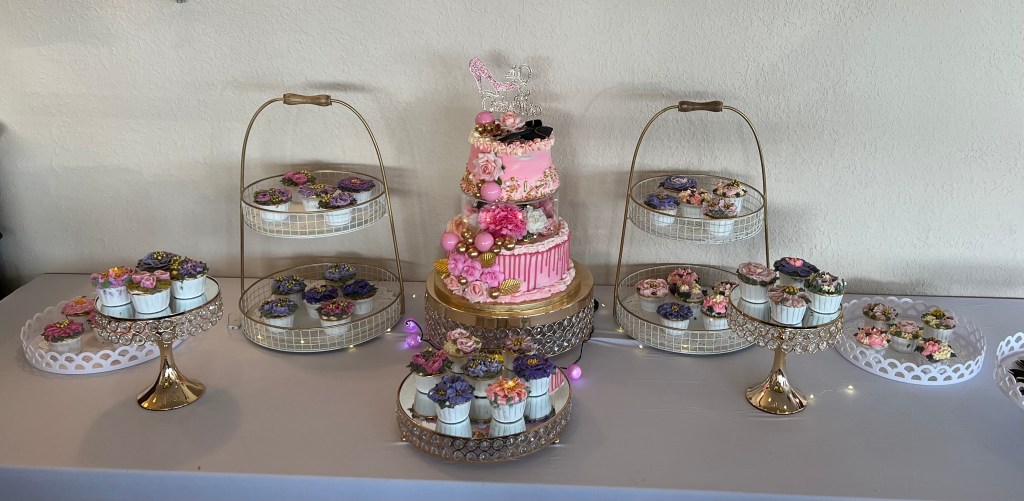 This is my first stacked birthday cake, it took a lot of research and studying. There are lots of components to stacking cakes, so make sure you watch some YouTube videos and do some homework. I’m just showing you the basics, it’s challenging but so rewarding!