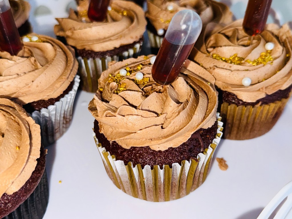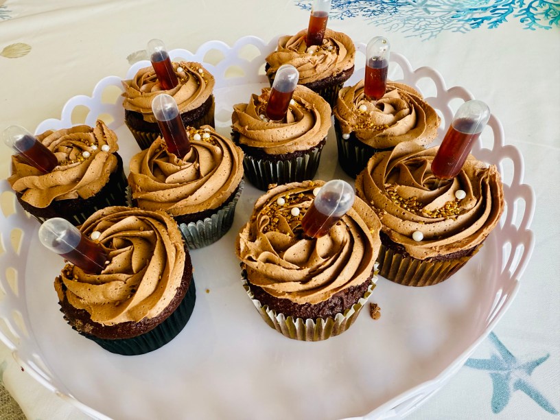 OPTIONAL: PIPETTES FILLED WITH KAHLUA STUCK IN THE CUPCAKE FOR SERVING!