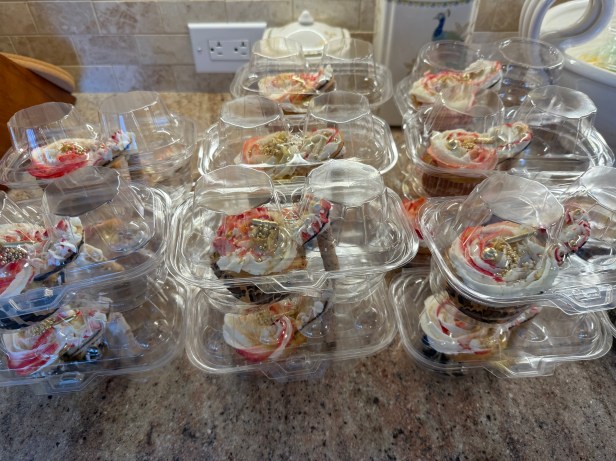 Preheat oven to 350 degrees. Place cake mix, eggs, melted butter, instant pudding and coconut milk in mixing bowl. Mix on medium speed for 2 minutes. Add in chopped pecans and shredded coconut. Pour about 1/2 cup of cake mix into cupcake wrappers, bake 20 minutes. Makes about 24 cupcakes.