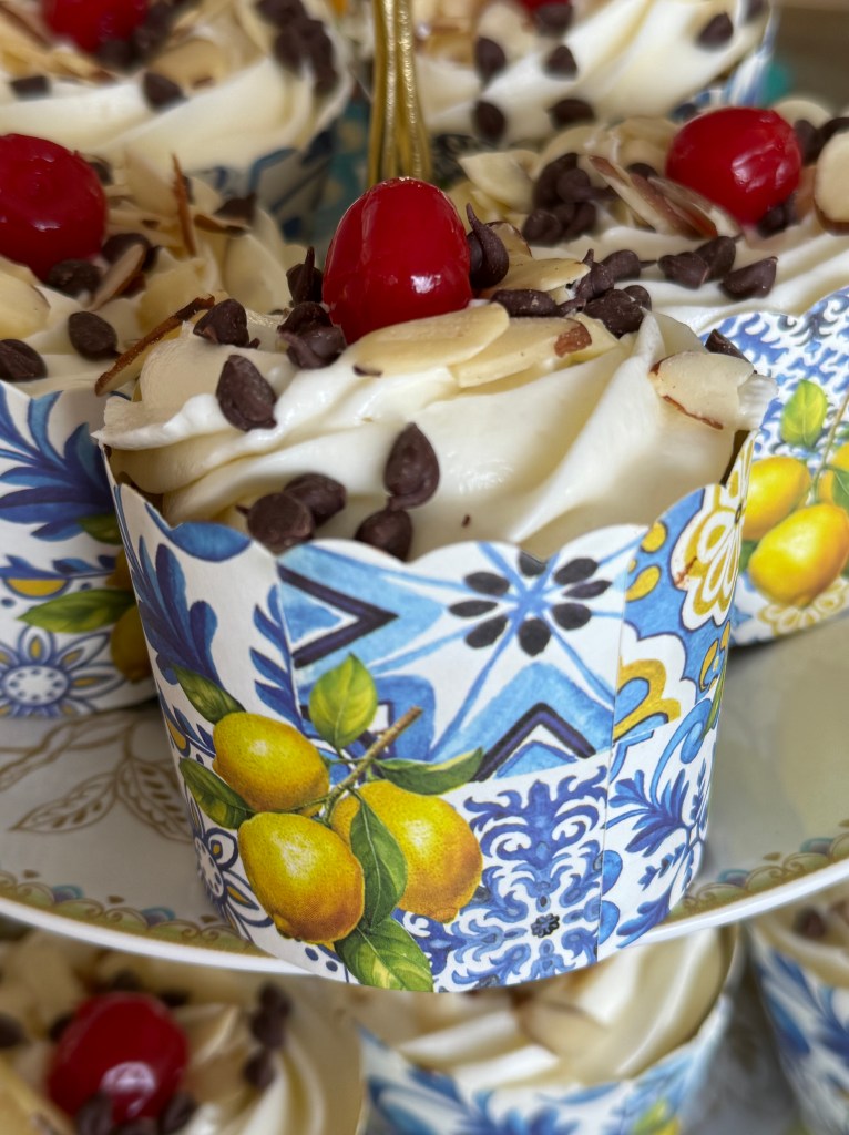 ✨ These cupcakes taste like a cross between a moist almond cake and a ricotta cheesecake — very traditional but also elegant for a dinner party.